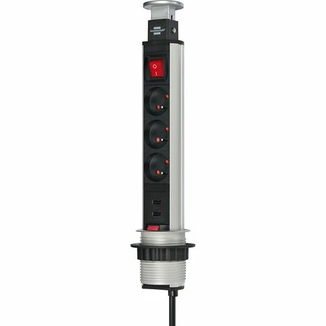 Brennenstuhl 1396201013 Steckdoseneinheit Tower Power, 3-Fach, USB