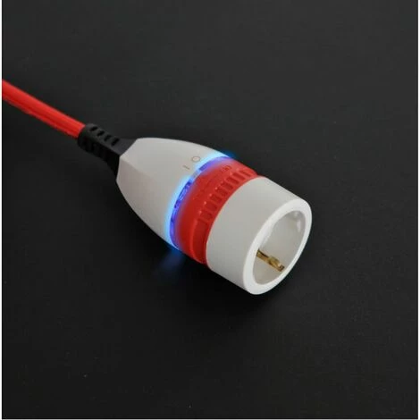 Qualitäts-Kunststoff-Verlängerungskabel mit Drehschalter und Textilmantel 5m H05VV-F 3G1,5 rot/weiß/schwarz