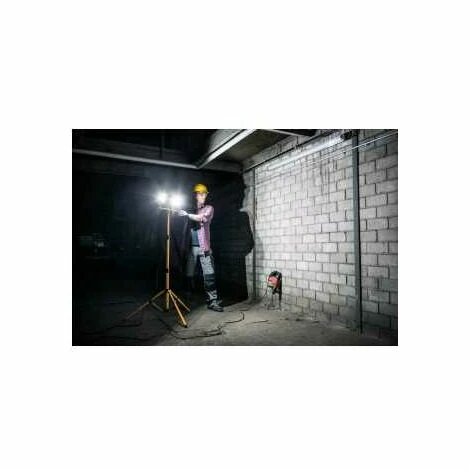 Der Stativ LED Strahler JARO 4050 T von Brennenstuhl ist ein energieeffizienter LED Arbeitsstrahler mit Stativ und 2x20W Leistung, der höchsten Ansprüchen gerecht wird. Mit einem Gehäuse aus robustem Aluminium, einem stabilem pulverbeschichteten Stahlrohr und einer Scheibe aus Sicherheitsglas für zusätzlichen Stoßschutz eignet er sich sowohl für den Innen- als auch Außeneinsatz. Die verbauten SMD-LEDs überzeugen durch ihre außergewöhnlich lange Lebensdauer und ihre spezielle Lichtstreuung für großflächige Ausleuchtung. Zudem überzeugt der Fluter mit Stativ durch folgende Eigenschaften:Schutzart IP65 – Staubdicht und strahlwassergeschütztStandfestes, robustes StahlrohrgestellMit drei stabilen StandrohrenHöhenverstellbar bis 160 cmKabellänge: 2,5mKabelbezeichnung: H07RN-F3G1,0Anzahl LEDs: 60Leistung: 40W (2x 20W)Lichtstrom: 2x 1950lmFrontscheibe aus SicherheitsglasFarbtemperatur: 6500K | Eigenschaften: Lichtfarbe: kaltweiß, Lumen: 3900 lm, Farbtemperatur: 6500 K, Kabellänge: 2,5, Kabeltyp: H07 RN-F 3G 1, Stromversorgung: kabelgebunden, Grundpreis: Nein, Schutzart IP: IP 65, Energielabel_v2: F